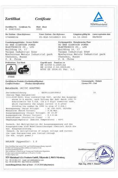 Product Certification Certificate